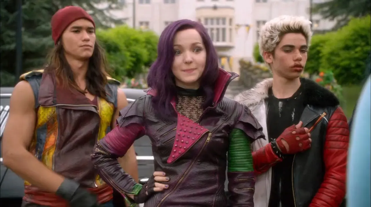 A present-day idyllic kingdom where the benevolent teenage son of King Adam and Queen Belle offers a chance of redemption for the troublemaking offspring of Disney's classic villains: Cruella De Vil (Carlos), Maleficent (Mal), the Evil Queen (Evie) and Jafar (Jay).